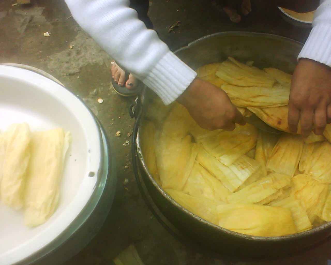 - El momento más importante, tendrá la vigilancia de los más experimentados. No se olviden del queso amasado mientras más haya mejor, porque siempre picamos (mitad al paladar, mitad a la humita).