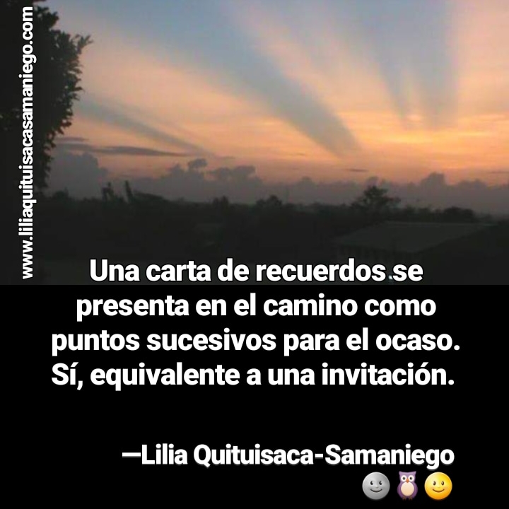 Una carta de recuerdos se presenta en el camino como puntos sucesivos para el ocaso. Sí, equivalente a una invitación.